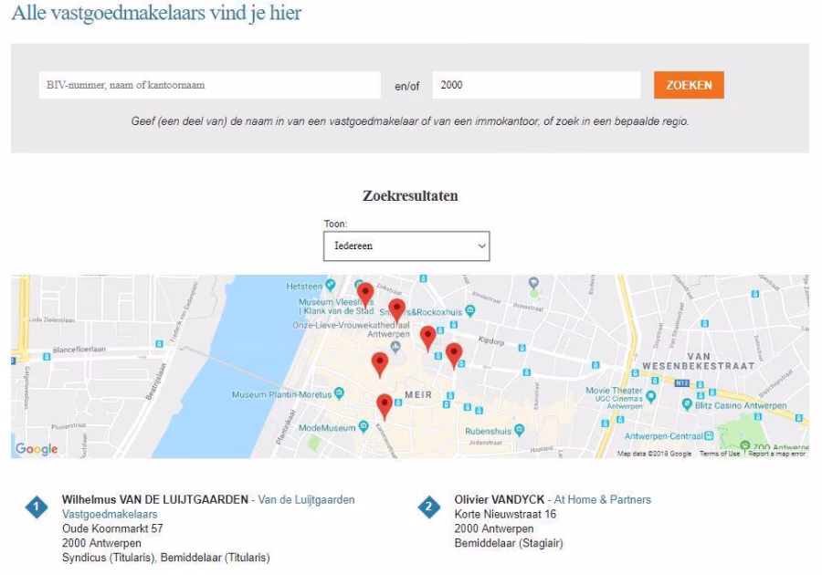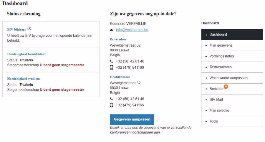 Alle makelaarsdata wordt automatisch gesynchroniseerd met een interne toepassing van het BIV (Beroepsinstituut van Vastgoedmakelaars).