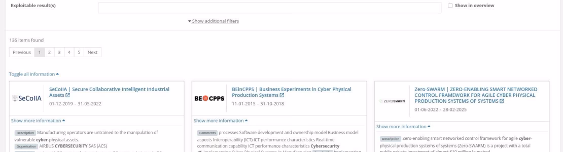 Een krachtig platform waarmee essentiële informatie over onderzoeks- en innovatieprojecten (R&I) gedeeld kan worden, inclusief bijhorende resultaten, middelen en relevante bronnen.