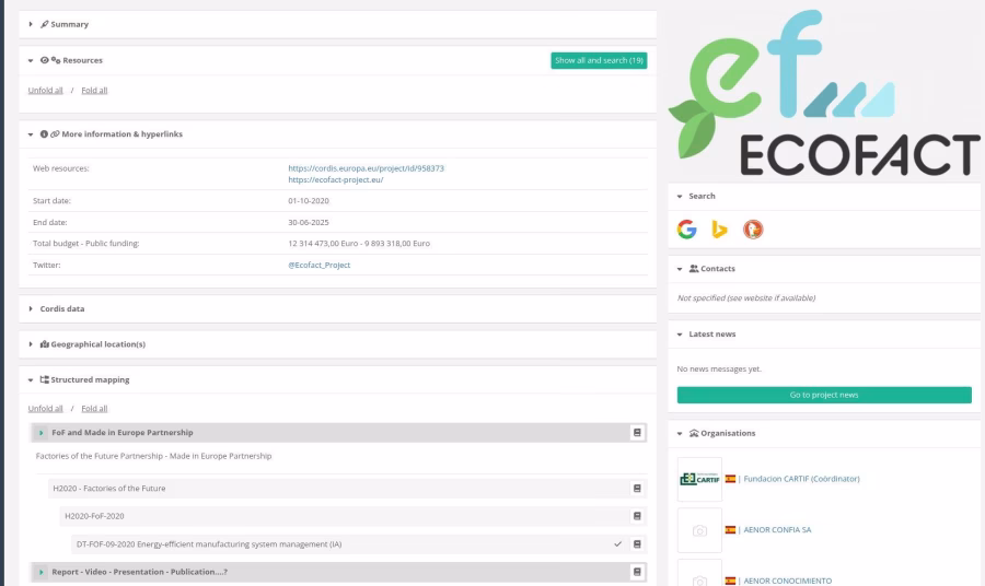 Basisinformatie van nieuwe EU-gefinancierde projecten en openbare deliverables wordt automatisch geïmporteerd op regelmatige basis.